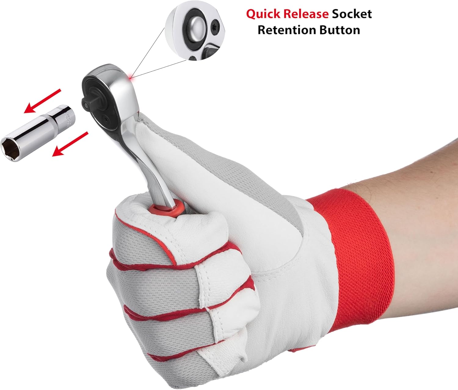 - [Complete Socket Set]: Includes 1/4-inch drive 72-tooth reversible quick release ratcheting wrench, 3.9-inch extension bar, and 10 metric sockets (4, 5, 6, 7, 8, 9, 10, 11, 12, 13 mm)