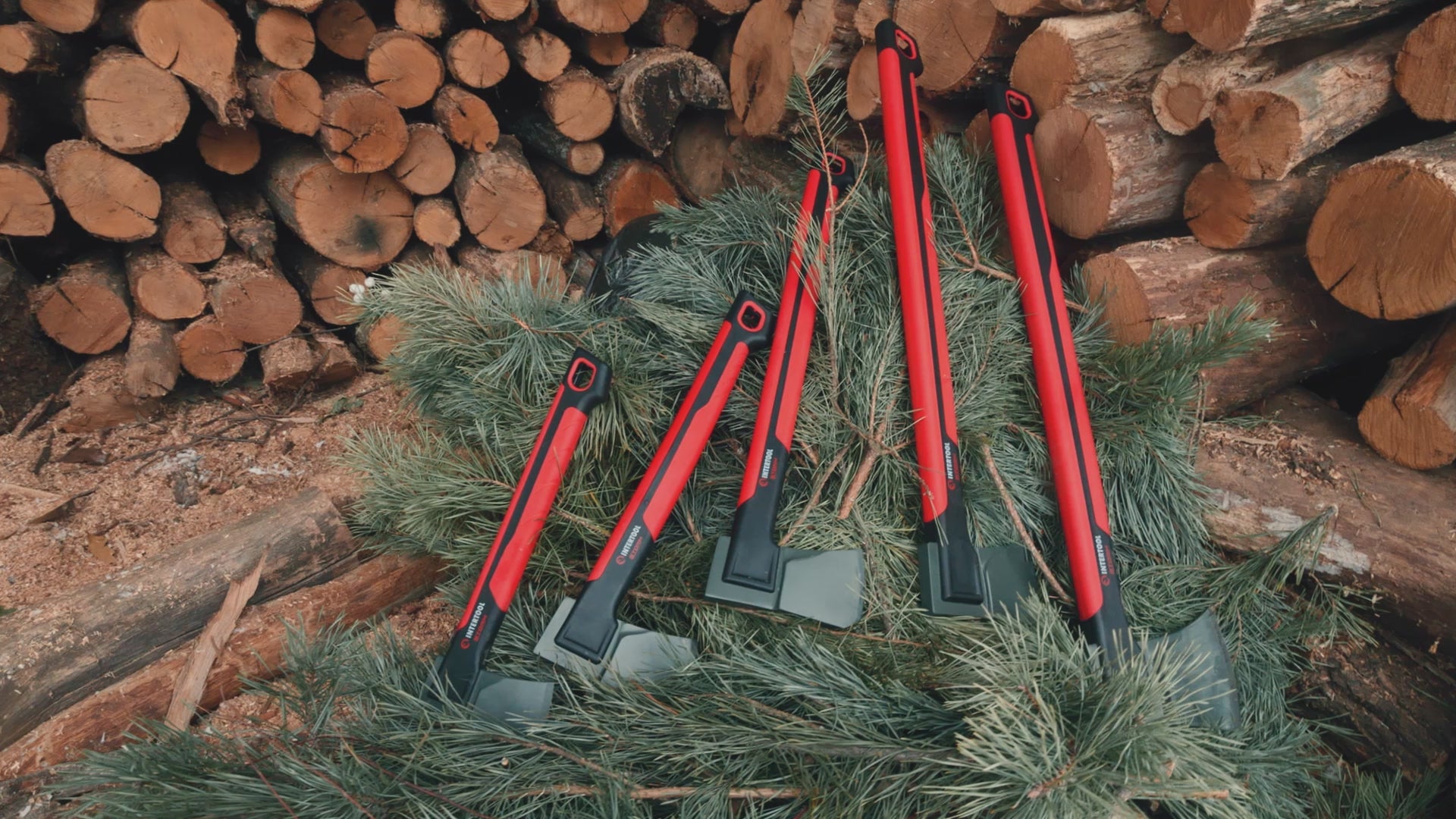 [Efficient Felling Axe]: A sharp, well-balanced 4 lb axe designed for felling and limbing. Includes a sheath and hang holes for convenient and safe storage