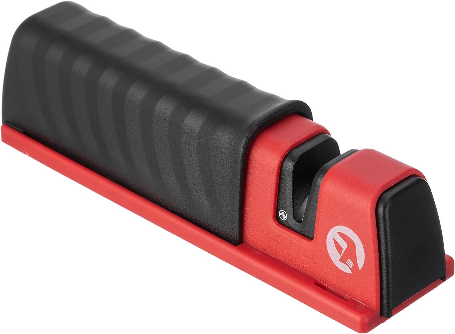 Constructed from reinforced plastic, the sharpener is lightweight yet sturdy. It stays stable on flat surfaces thanks to non-slip pads or can be held in hand for sharpening on the go. -