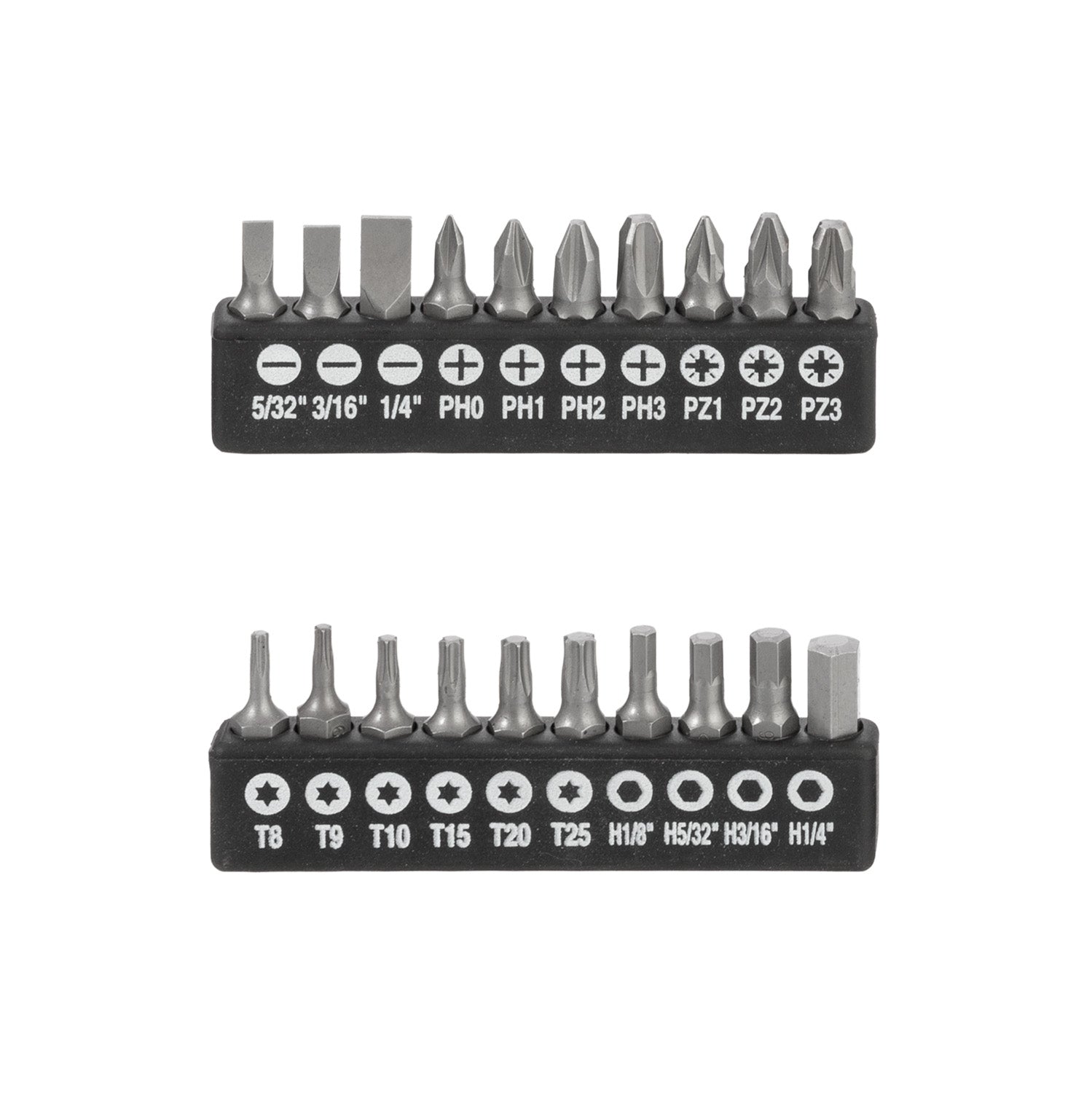 - [Универсальный набор инструментов]: Прочные отвертки и биты для самых распространенных типов винтов: Phillips, Flathead, Torx, Hex и Pozidriv. Легко справляется с домашними проектами, такими как установка дверных ручек, ремонт гаражного оборудования, сборка офисной мебели, техническое обслуживание кухонной техники, ремонт кондиционеров и многое другое. Отличный подарок для новоселов, студентов и новичков.