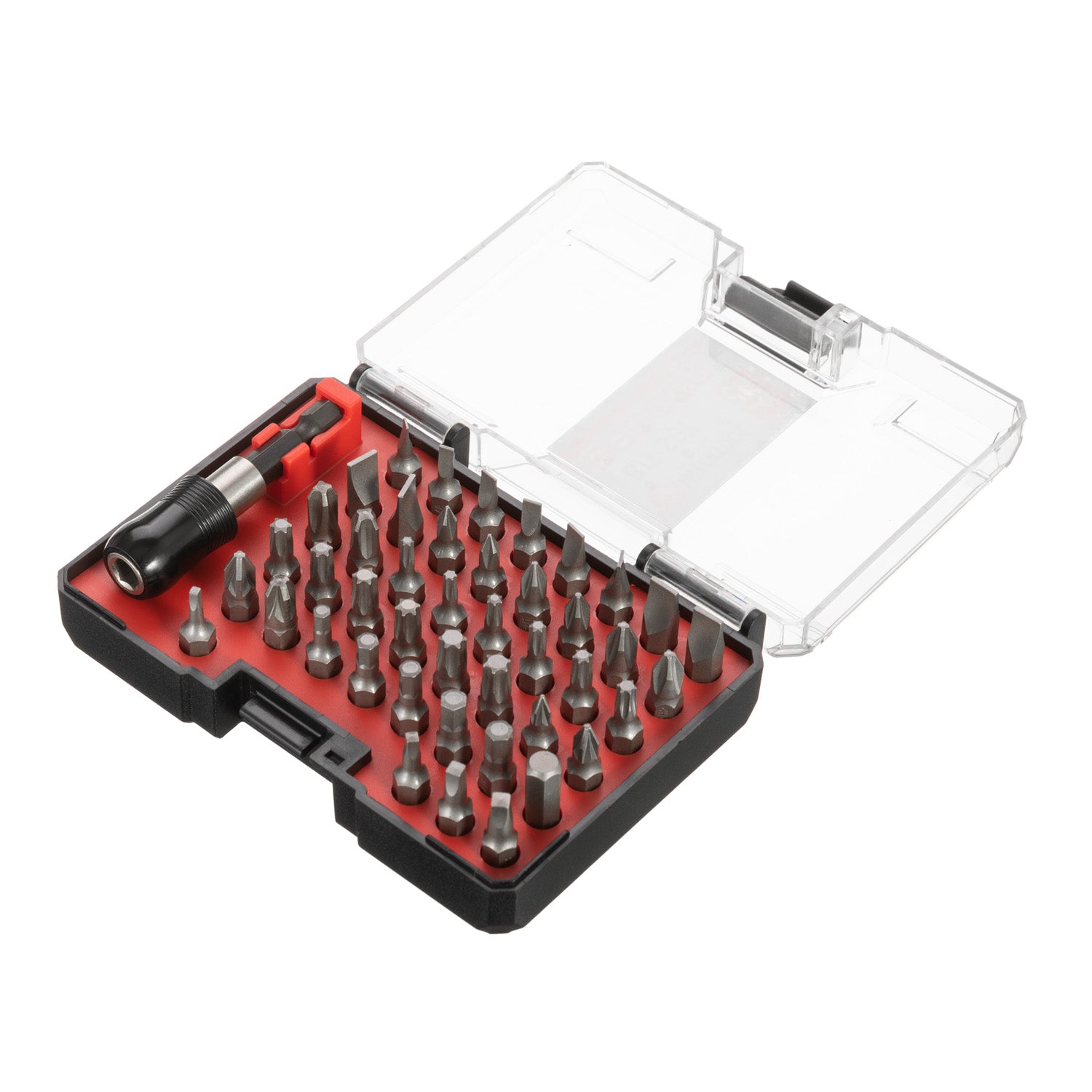 - [Самые востребованные биты и многое другое]: 10 шлицевых, 8 крестовых, 12 Torx, 4 Pozidriv, 6 шестигранных и 4 квадратных. Каждая бита обозначена своим типом.