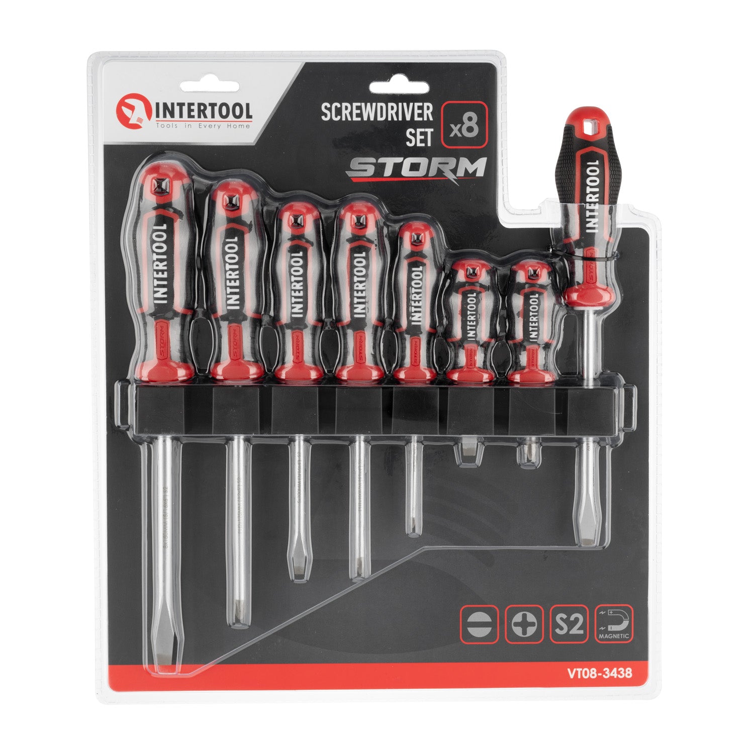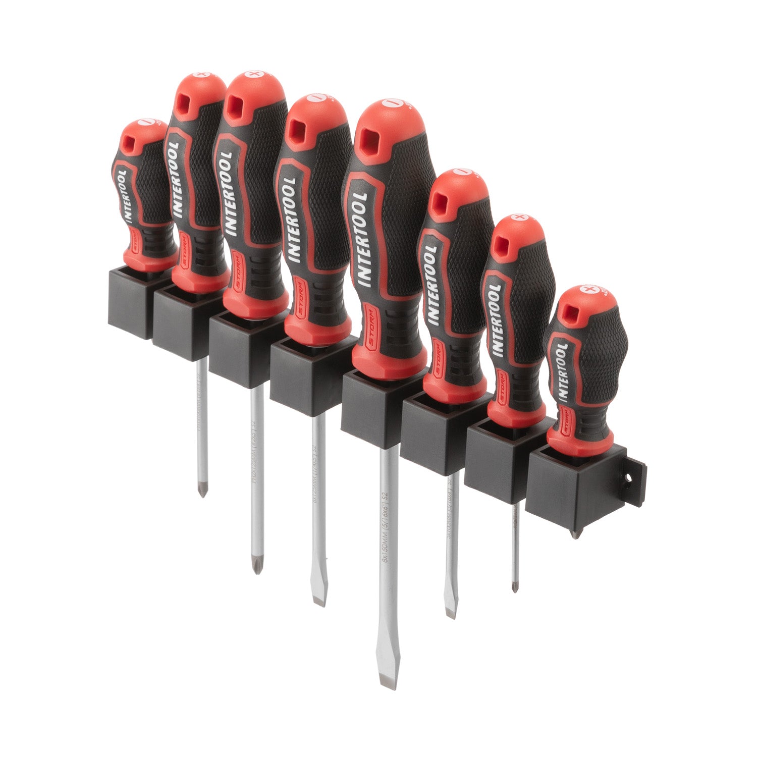 Набор отверток INTERTOOL 6 шт., крестовые и плоские, настенный держатель | VT08-3436